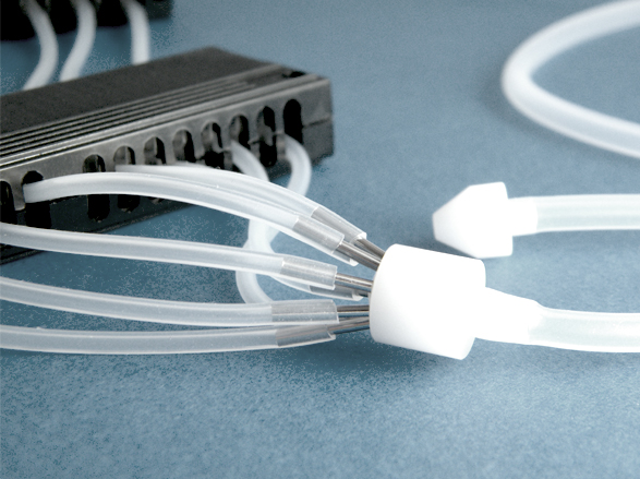 Manifold/Adapter 8 to 1 Adapter connects 1 supply-tube to 8 standard-sized tubings.