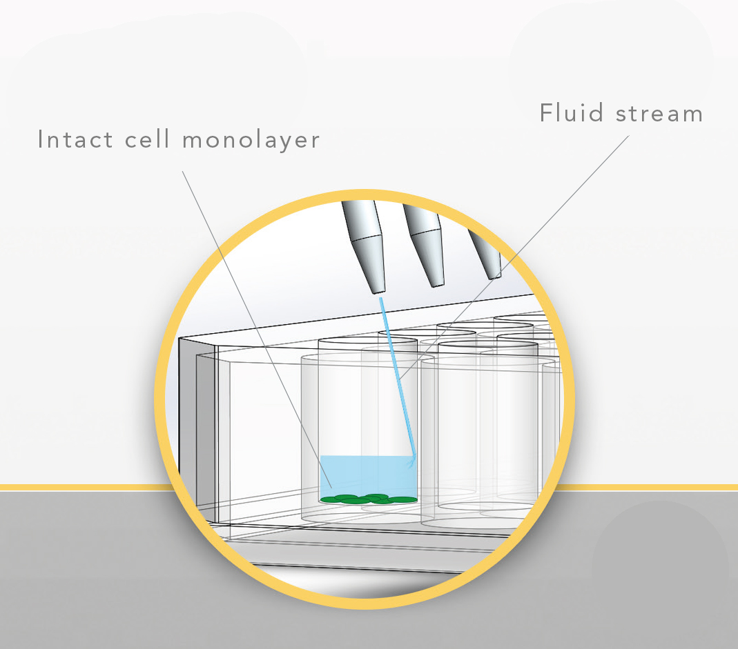 For sensitive cell-based assays, the angled tips allow gentle dispensing to the side of the well.