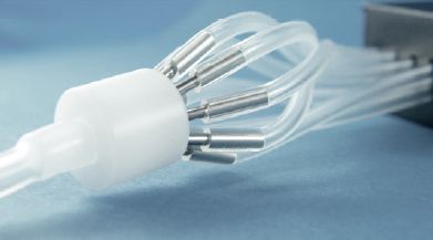 Standard Long Tube Adapter connects 1 supply-tube (40 – 200 cm) to 8 standard-sized tubings. PlasticTips. 8 to 1 Manifold